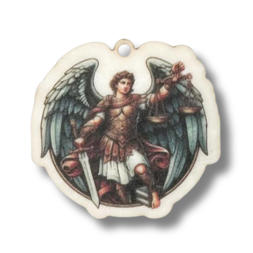 O Aromatizante Imagem de São Miguel Arcanjo - Seduction combina o poder simbólico do Arcanjo protetor com um perfume envolvente e duradouro. Ideal para quem busca um toque de fé aliado a um aroma marcante que transmite energia e confiança.