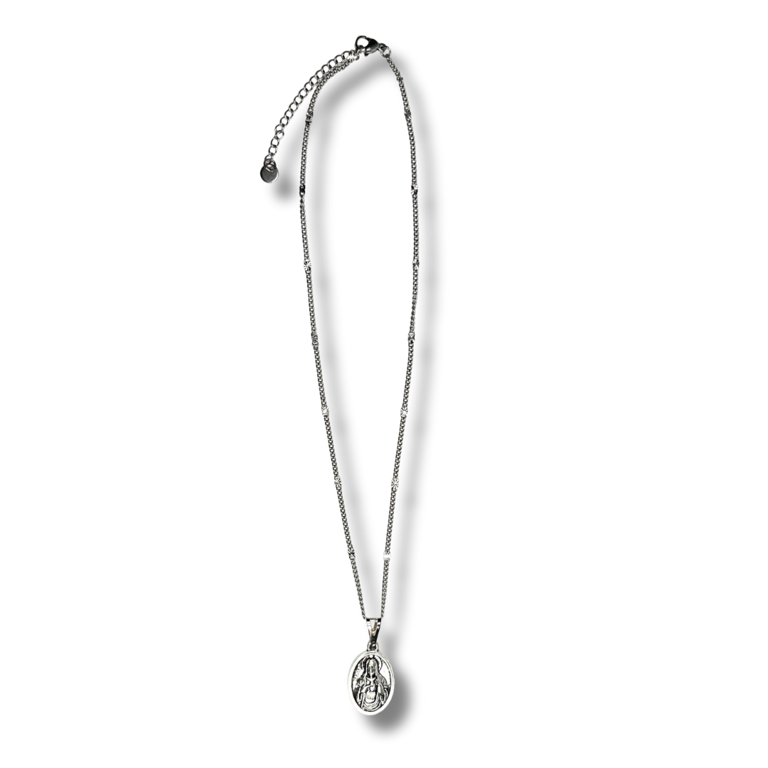 Produzido em aço inoxidável, o colar é resistente, durável e ideal para uso diário. Seu design elegante e discreto permite que homens e mulheres expressem sua fé com sofisticação, seja em momentos de oração ou na rotina diária.