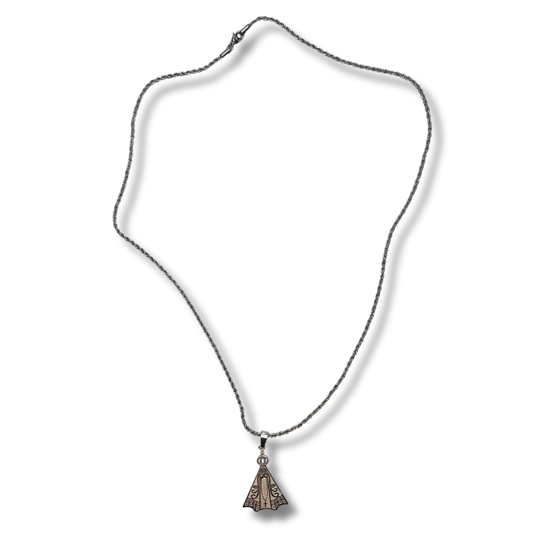 Colar Prateado de Nossa Senhora Aparecida em Aço Inox – Pingente Liso