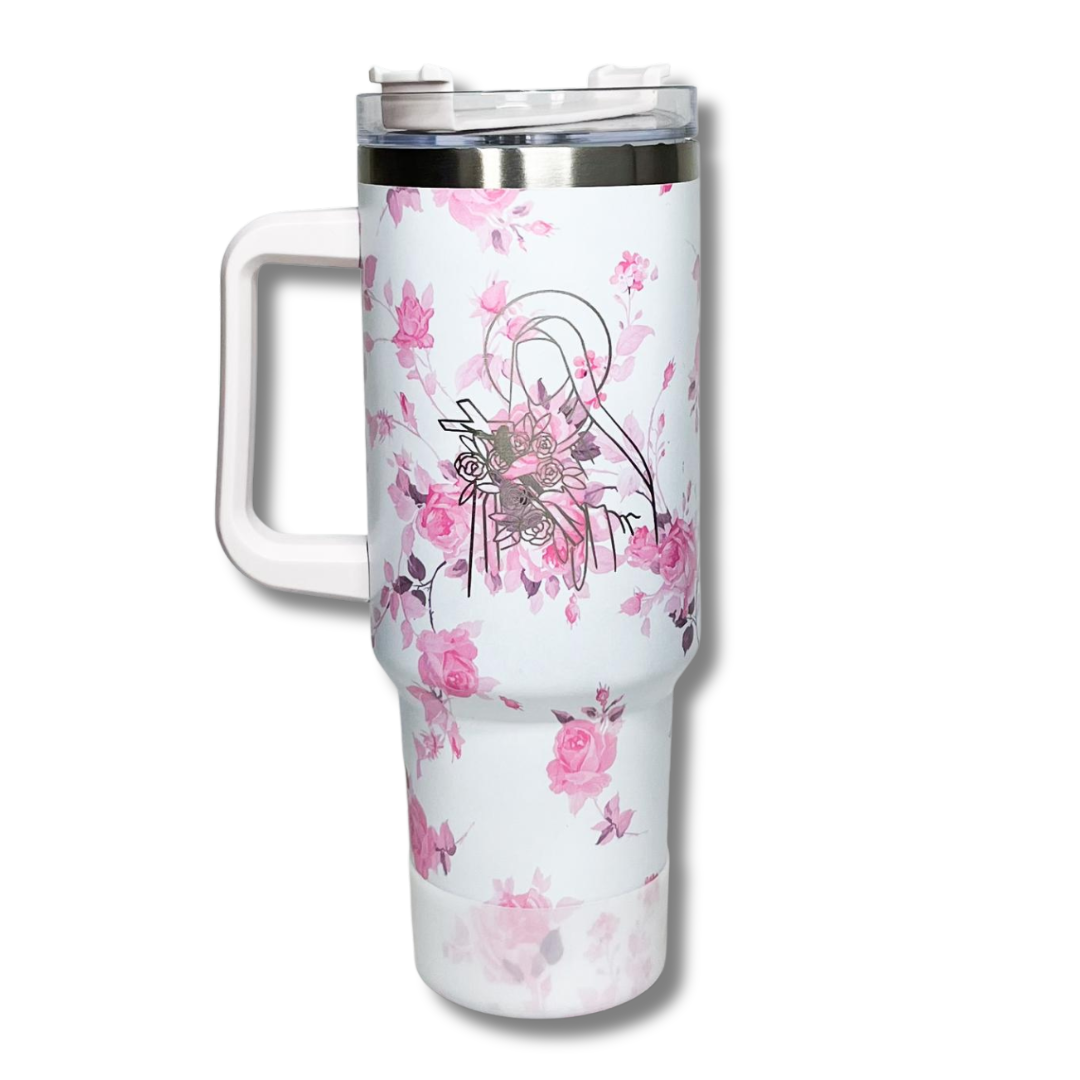 Produto: Copo Térmico Floral Rosa de Santa Teresinha do Menino Jesus – 1,2L