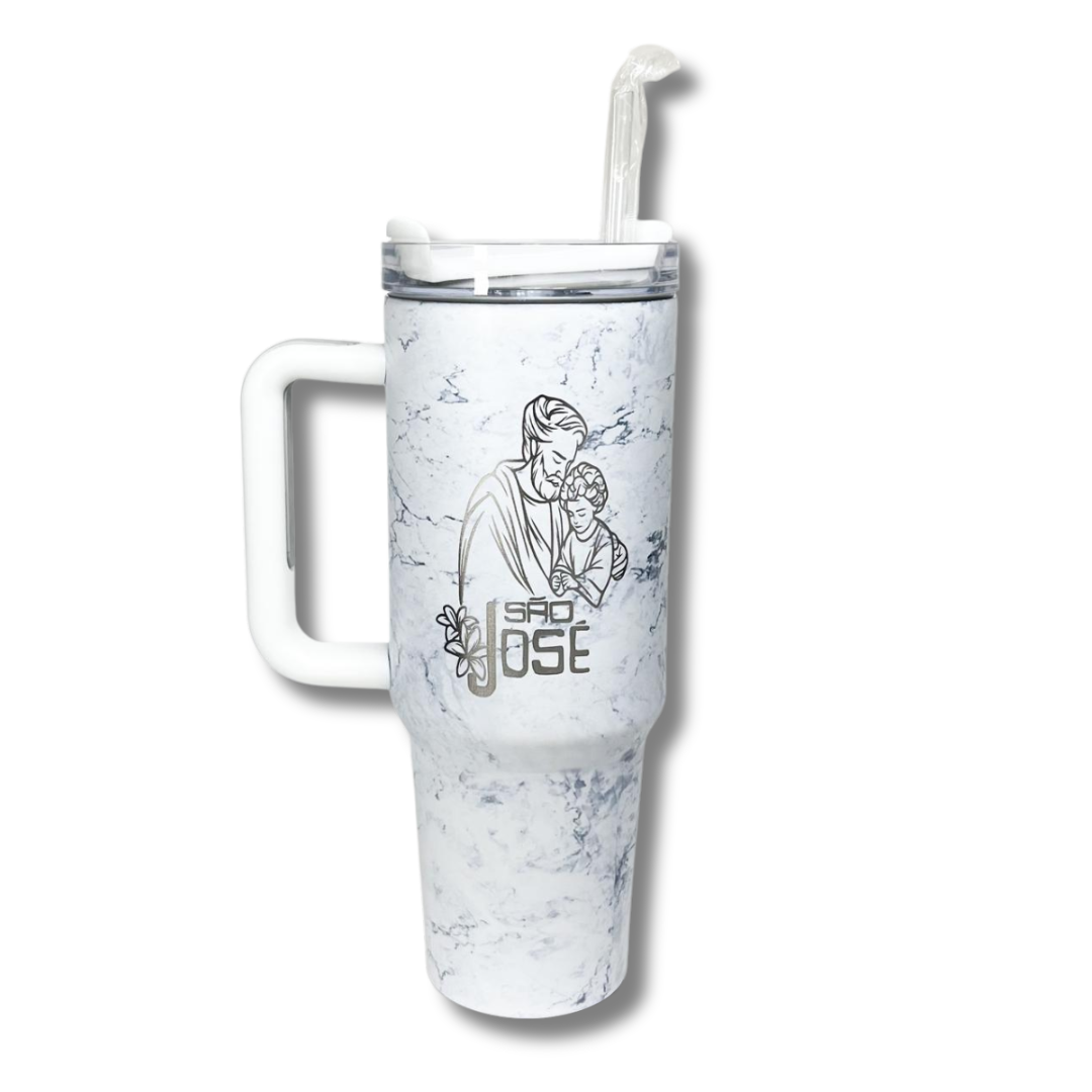 O Copo Térmico Marmorizado Branco de São José 1,2L une praticidade e espiritualidade em um design moderno e sofisticado. Com acabamento marmorizado na cor branca e a imagem de São José estampada, representa a força, a humildade e a fé do protetor das famílias.