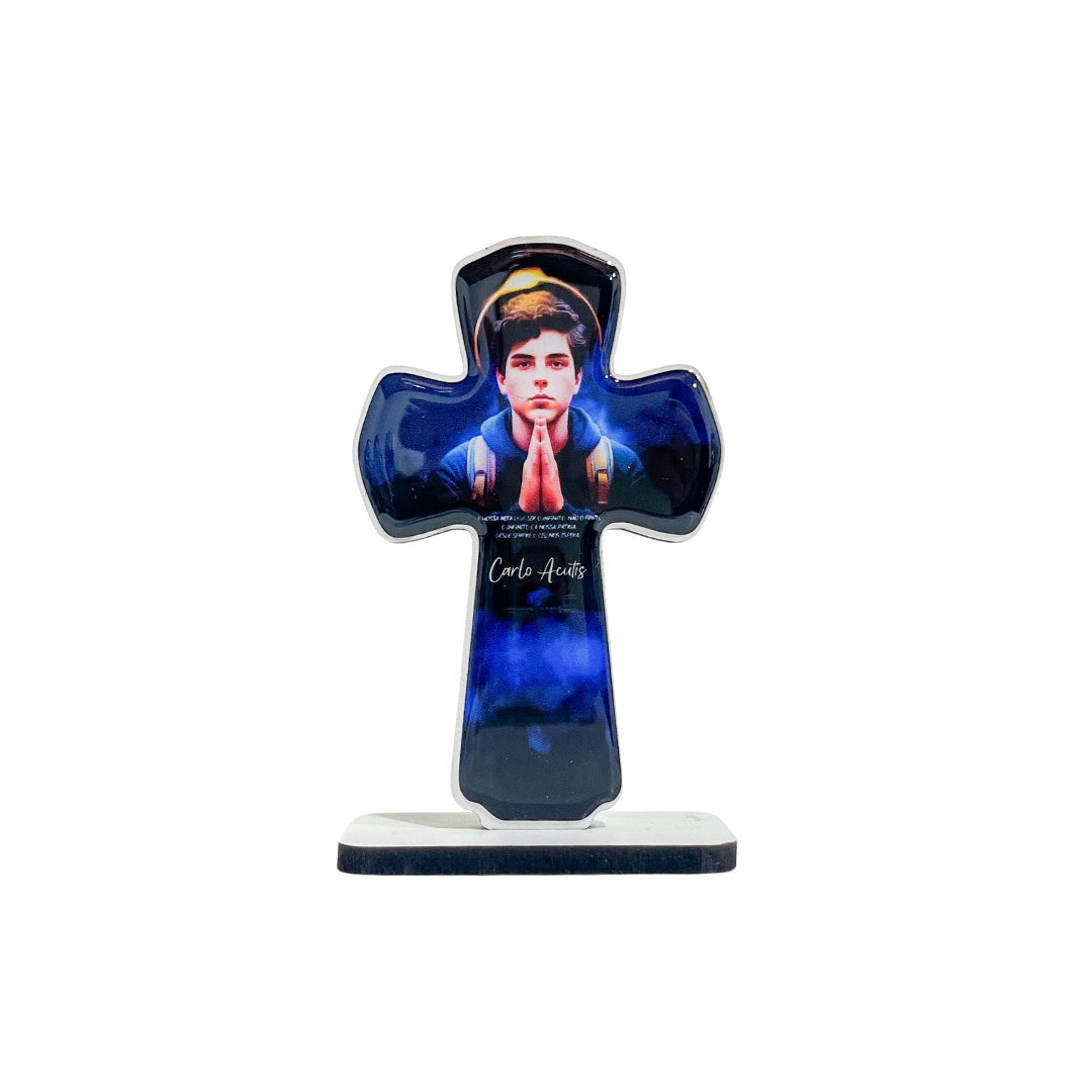 O Crucifixo de Mesa Carlo Acutis – 15 cm em MDF é uma peça devocional que une a força do Cristo crucificado à juventude santa de Carlo Acutis, o Beato que tocou o mundo com sua fé simples e profunda na Eucaristia. Com design moderno e delicado, é ideal para quem deseja montar um pequeno altar ou carregar uma mensagem de fé no cotidiano.