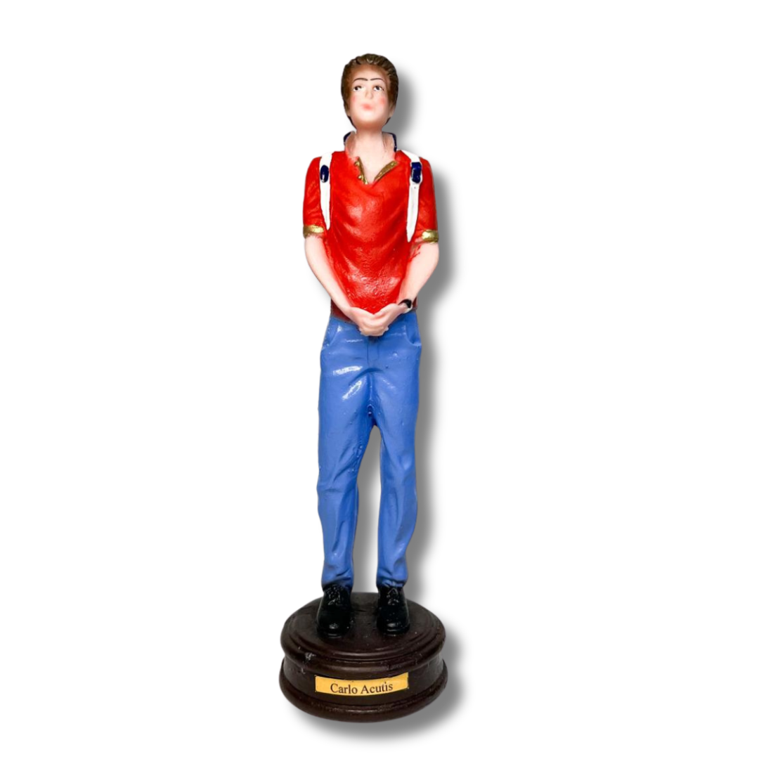 Confeccionada em resina de qualidade, a imagem possui acabamento delicado e pintura detalhada, valorizando os traços característicos de São Carlo Acutis. Seu tamanho é ideal para altares domésticos, oratórios, ambientes de oração ou espaços dedicados à evangelização.