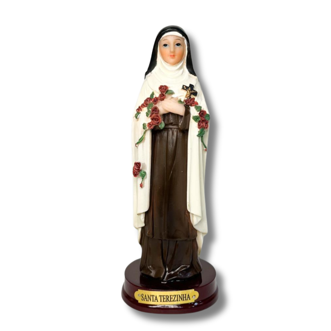 A Imagem de Resina de Santa Teresinha, com 15 cm de altura, representa uma das santas mais queridas da Igreja, conhecida por sua espiritualidade da “pequena via”, marcada pela simplicidade, confiança plena em Deus e amor vivido nos pequenos gestos do dia a dia.