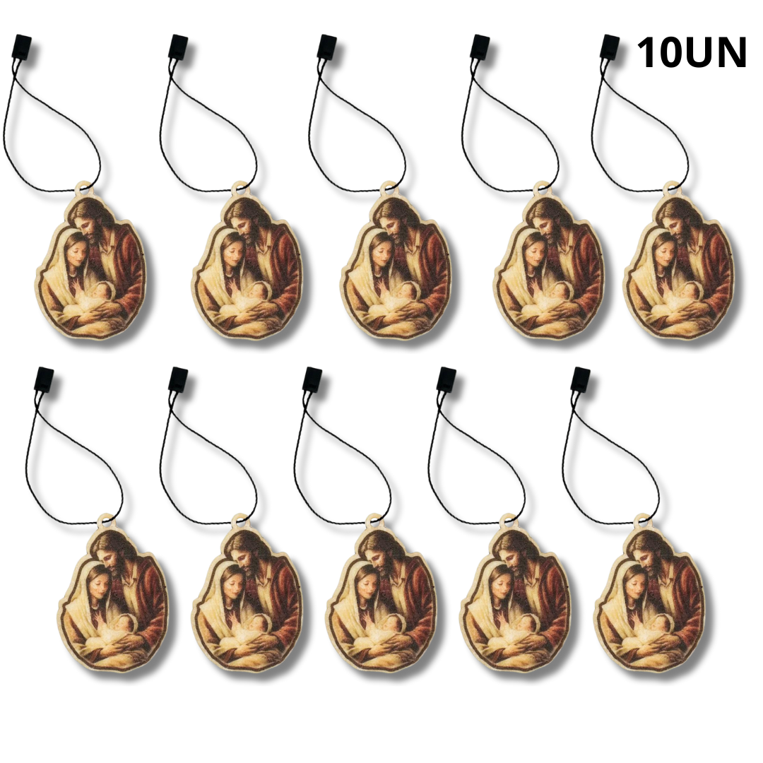 O Kit 10 Aromatizantes da Sagrada Família – Aroma Chiclete é uma forma delicada e perfumada de levar a presença de Jesus, Maria e José para o seu dia a dia. O perfume doce de chiclete traz leveza e alegria, enquanto a imagem da Sagrada Família inspira união, amor e proteção dentro do lar.