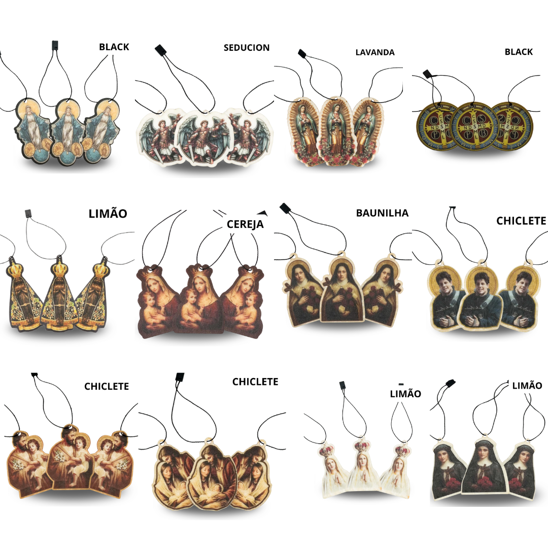 Produto: Kit com 3 Aromatizantes Religiosos – Escolha entre 12 Devoções