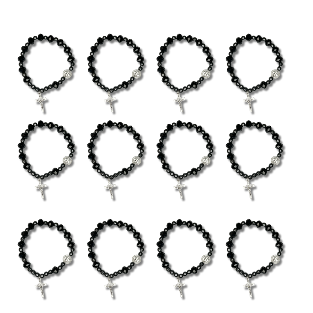 O Kit com 12 Pulseiras de Hematita com Medalha de São Bento e Pingente de Cruz é um acessório religioso que combina design discreto com profundo significado espiritual, ideal para o uso diário.