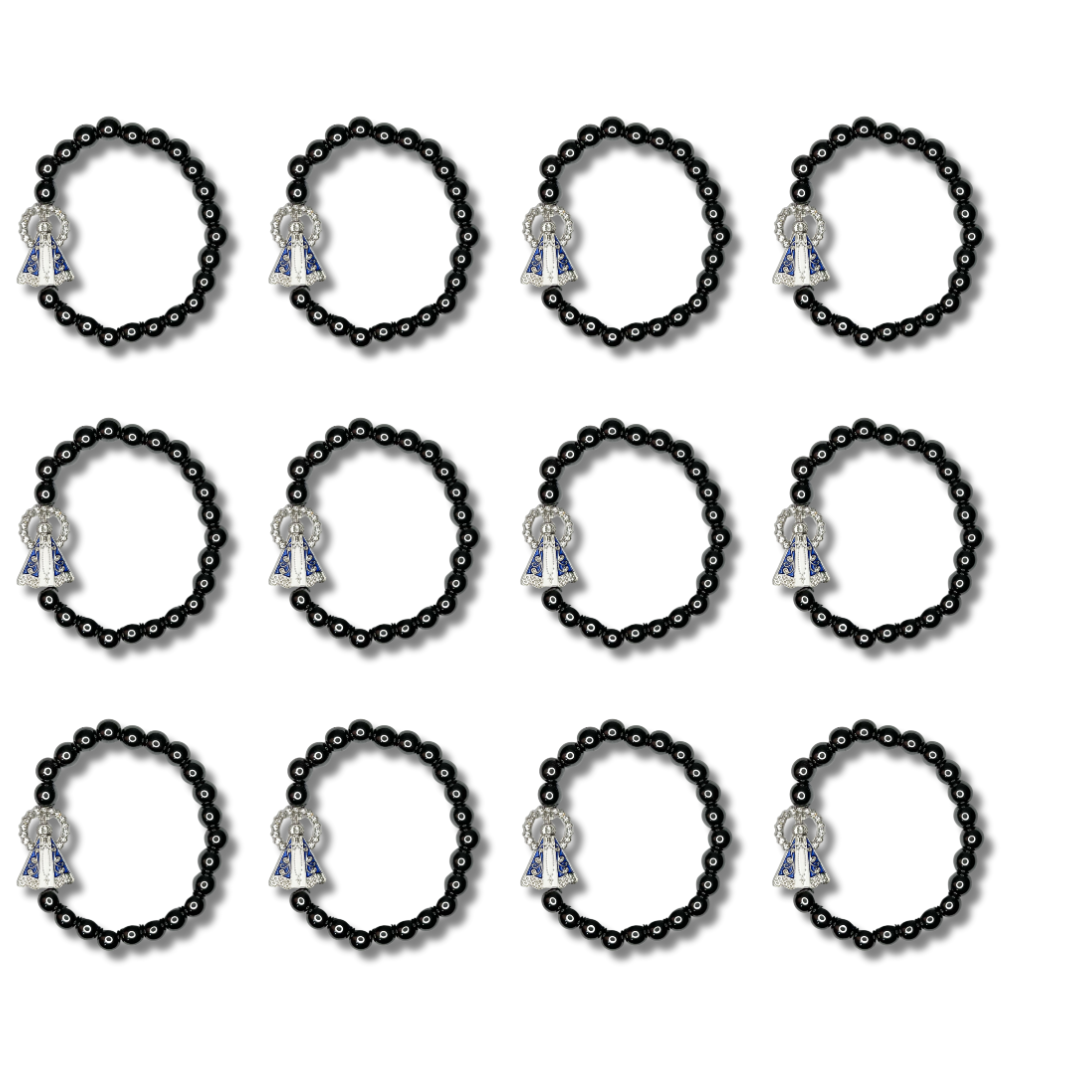 O Kit com 12 Pulseiras de Hematita com Pingente de Nossa Senhora Aparecida é um acessório religioso elegante e simbólico, ideal para quem busca expressar a devoção mariana com sofisticação e simplicidade.