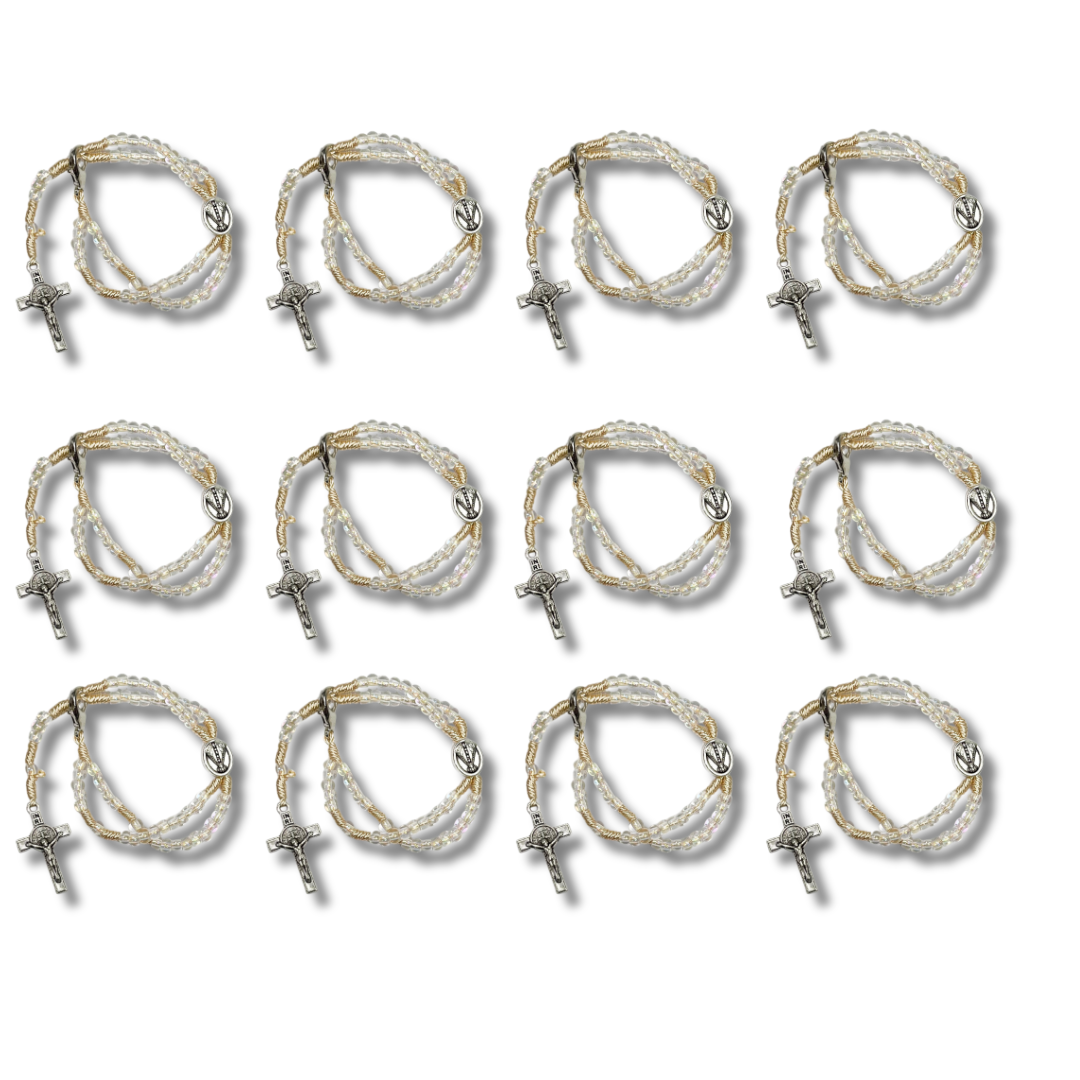 📿 Kit com 12 Terço de Pulso Infantil Branco Translúcido com Medalha de N. S. Aparecida – Atacado (21 cm)