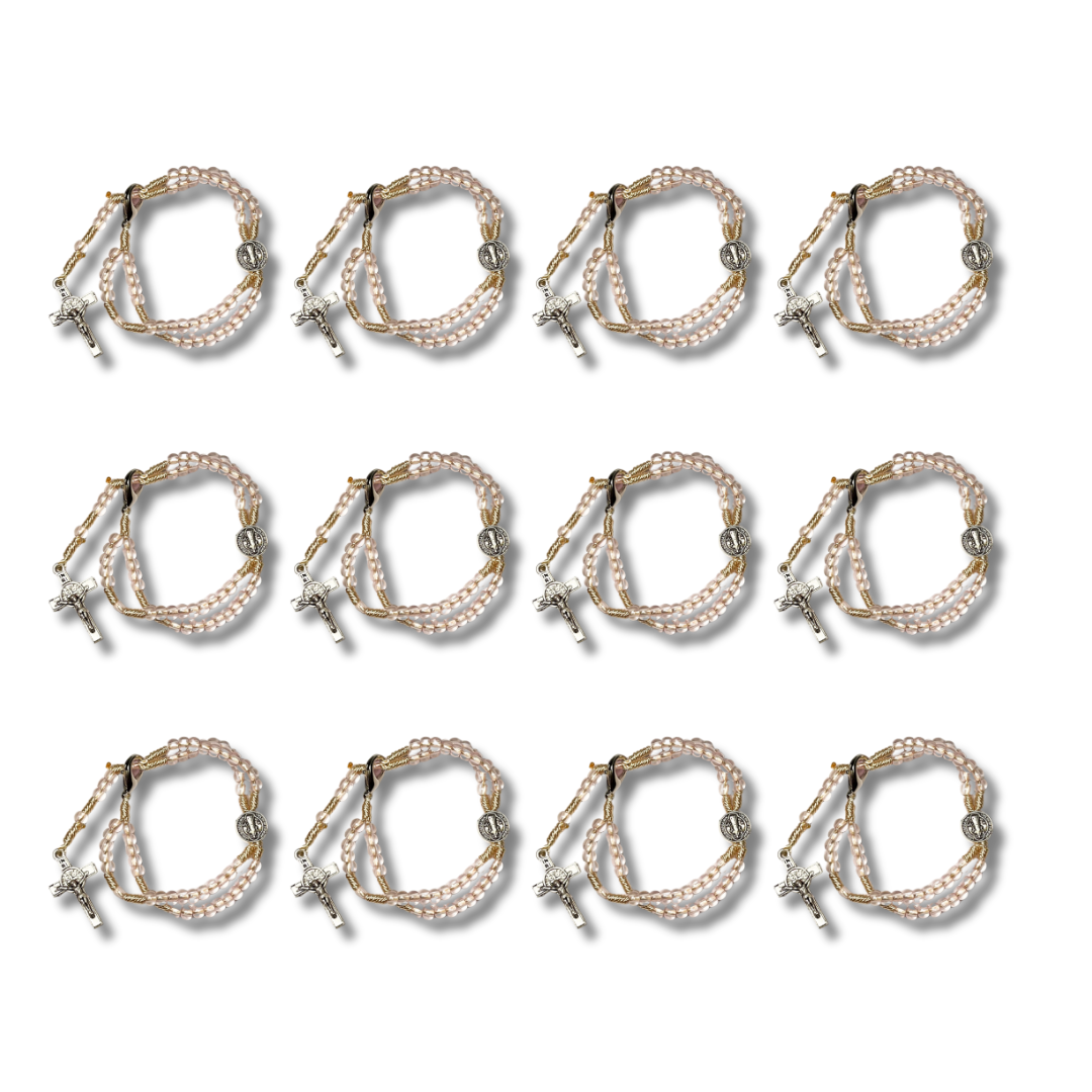 O Terço de Pulso Infantil Rosa Translúcido com Medalha de São Bento é um acessório delicado e cheio de significado espiritual, ideal para introduzir a fé no cotidiano das crianças.