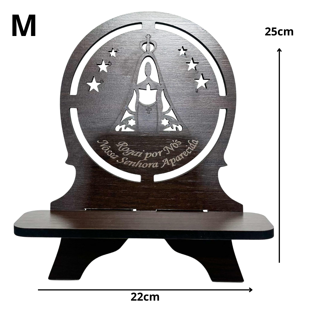 O Porta Bíblia de Nossa Senhora Aparecida em MDF é uma peça funcional e devocional que une fé e beleza em um único objeto. Feito com cuidado e acabamento fino, este suporte é perfeito para manter a Bíblia aberta em passagens especiais, facilitando a leitura e a oração diária.