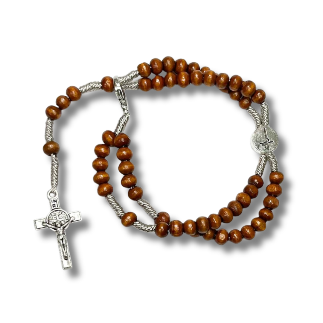 🌿 Terço de Pulso de Madeira com Fecho - 22 CM